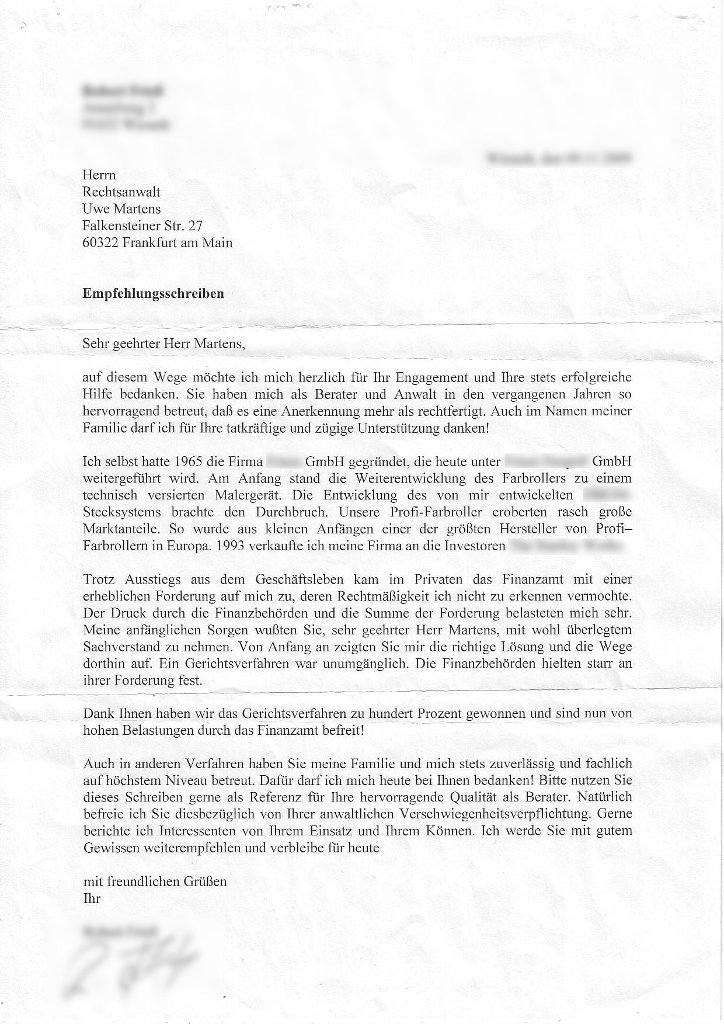 Kommentar eines Mandanten bei der Bitte um Empfehlung: